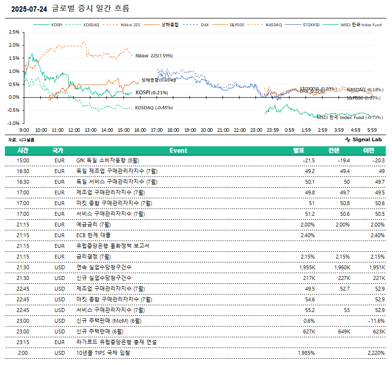 [시그널랩] 아침 시황 및 주요 체크 포인트 - 7/25