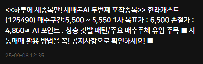 - 투자성향: 단기 / 주도주 변동성 공략 매매 / 일평균 추천주 3종목 발송