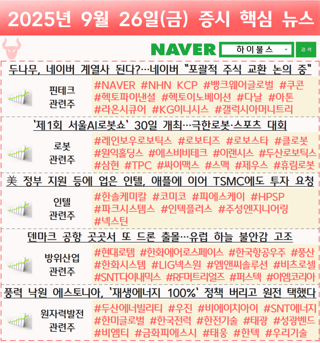[09.26] 증시 개장 전 핵심뉴스 하이불스 Pick