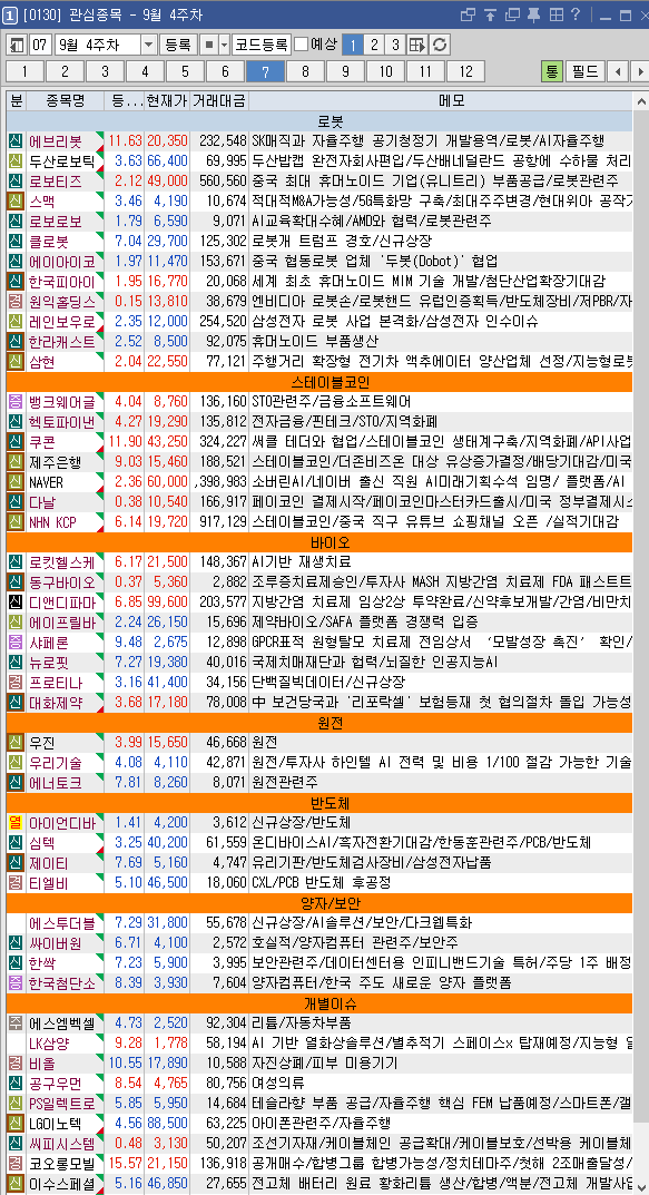 25년 9월 30일(화) 상위트레이더 관심종목+[스테이블코인/정보관리원화재/비만치료제/로봇] 주도주 재료 정리 + 포트폴리오 대응전략