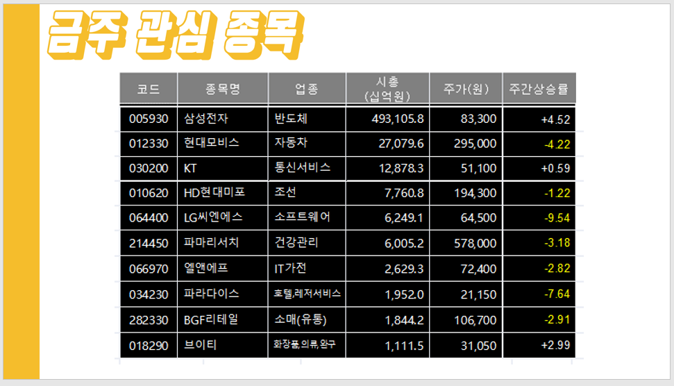 10.01(수) 관심 이슈/테마별, 미정씨 신호포착 종목 스크리닝