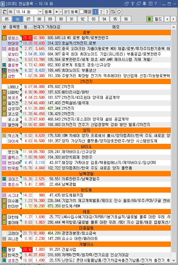 25년 10월 15일(수) 상위트레이더 관심종목+[로봇/2차전지/양자/바이오] 주도주 재료 정리 + 포트폴리오 대응전략
