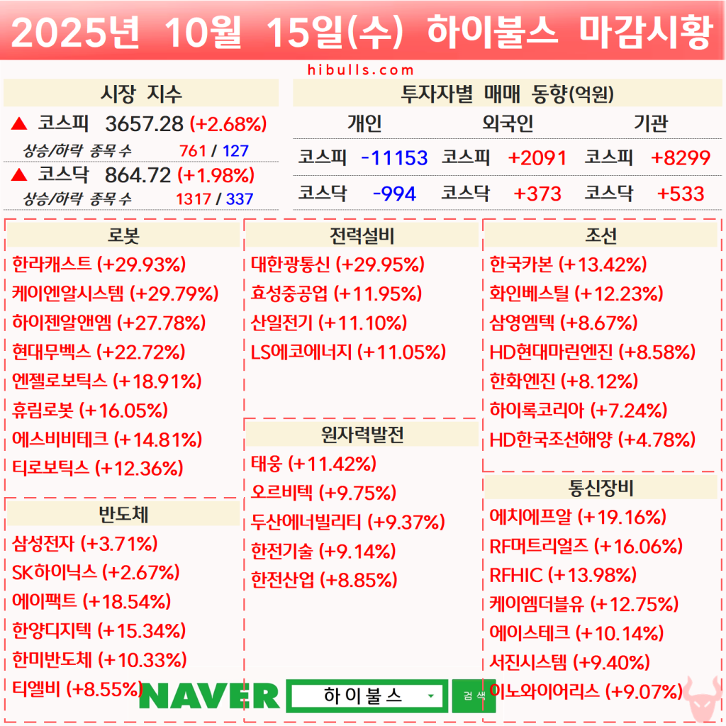 [10.15] 증시 마감시황 및 오늘의 특징주
