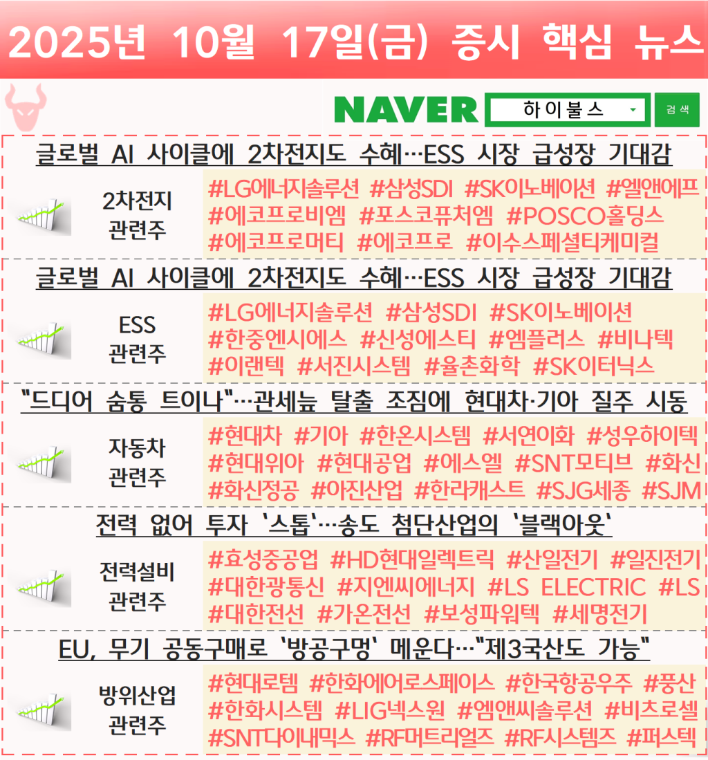 [10.17] 증시 개장 전 핵심뉴스 하이불스 Pick