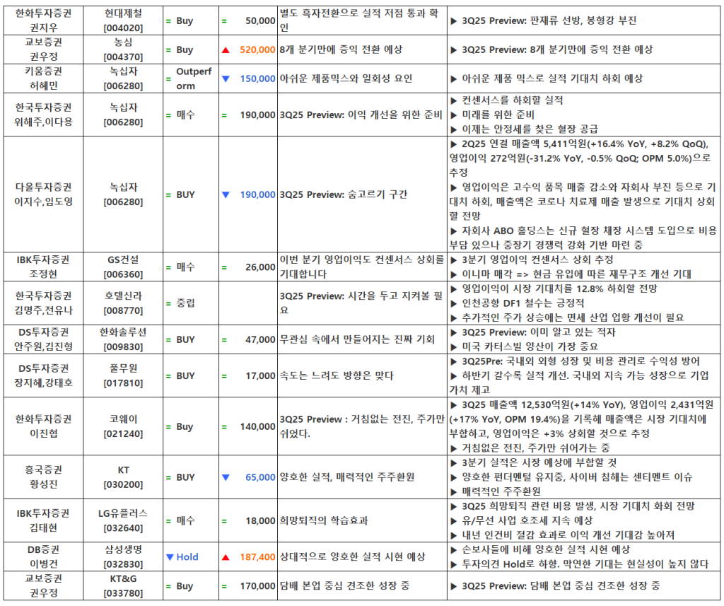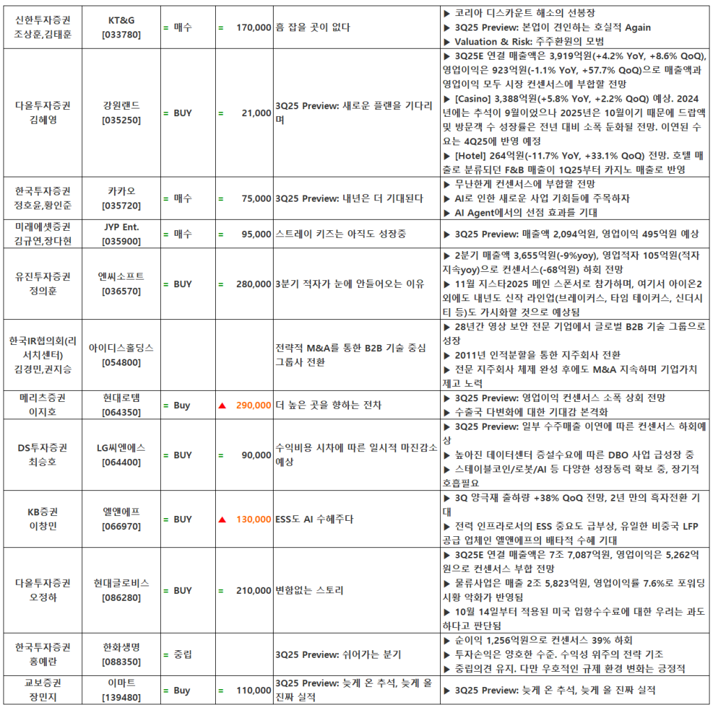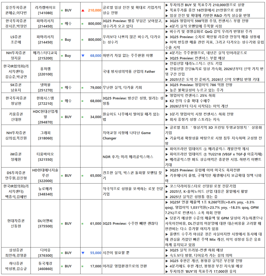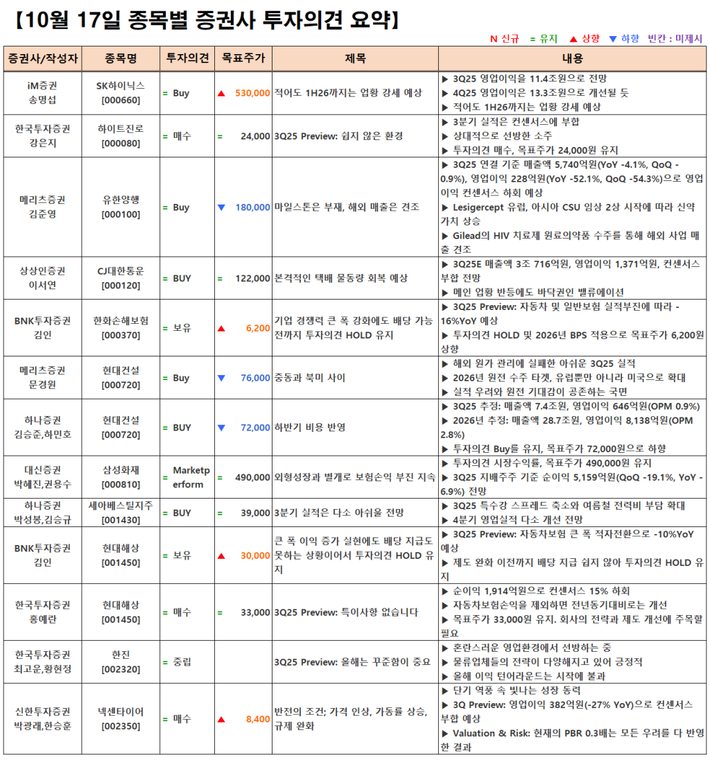 [10.17] 종목별 증권사 투자의견 요약