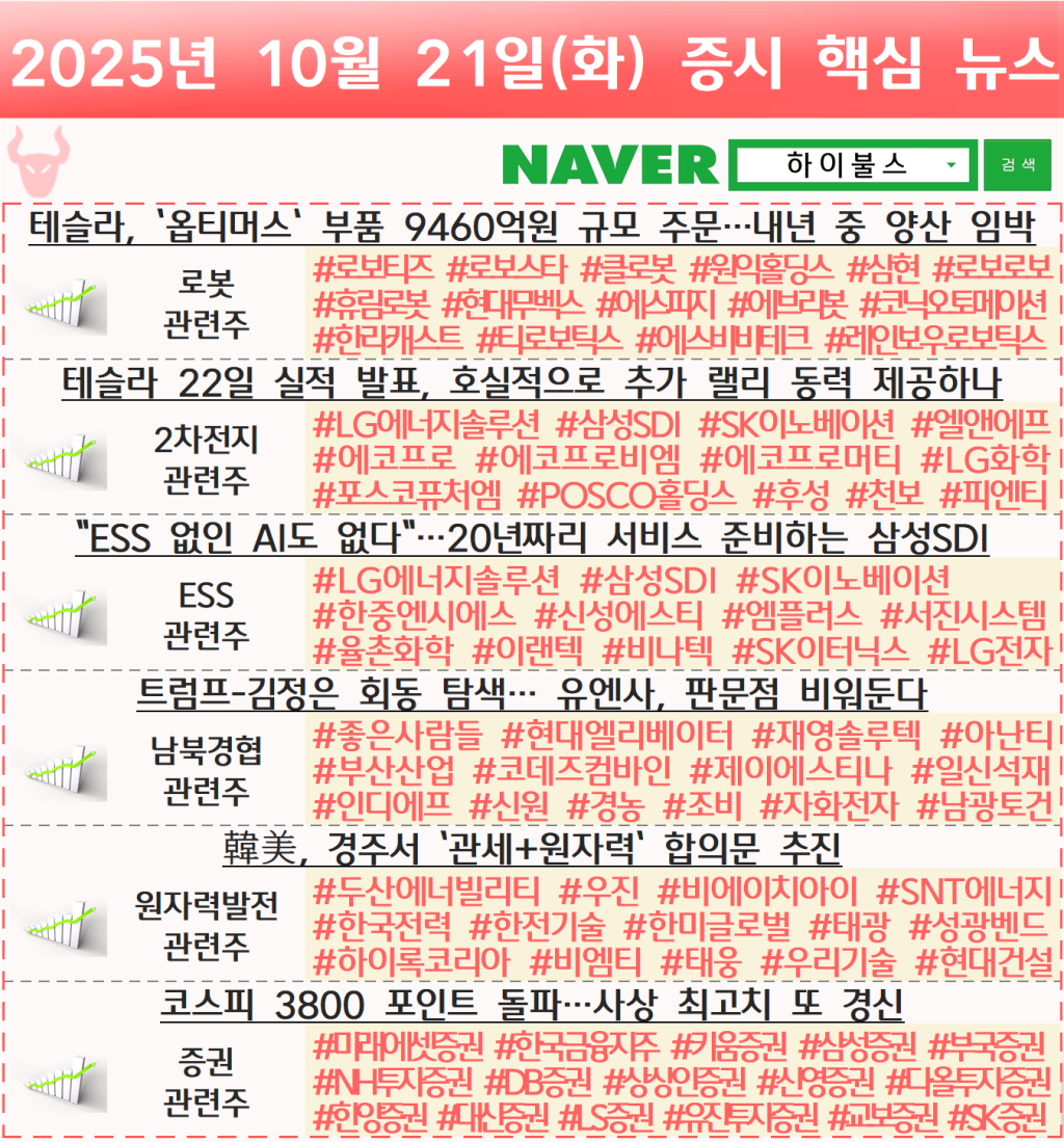 [10.21] 증시 개장 전 핵심뉴스 하이불스 Pick