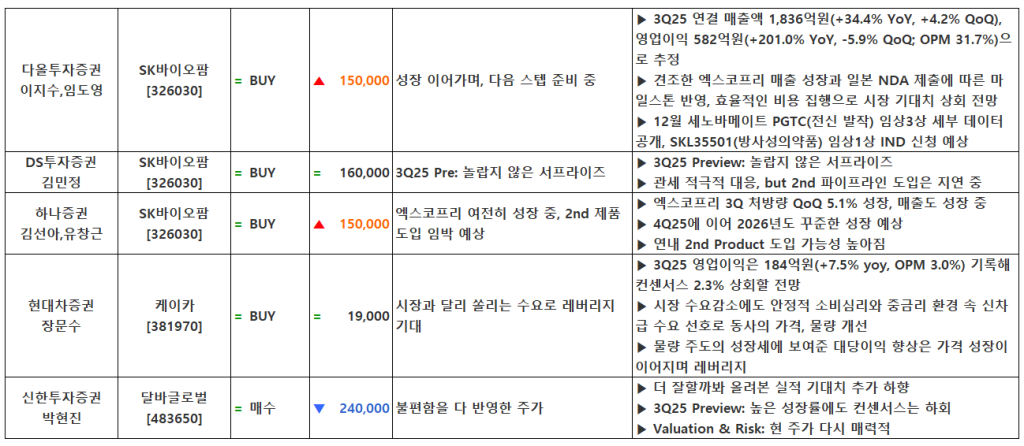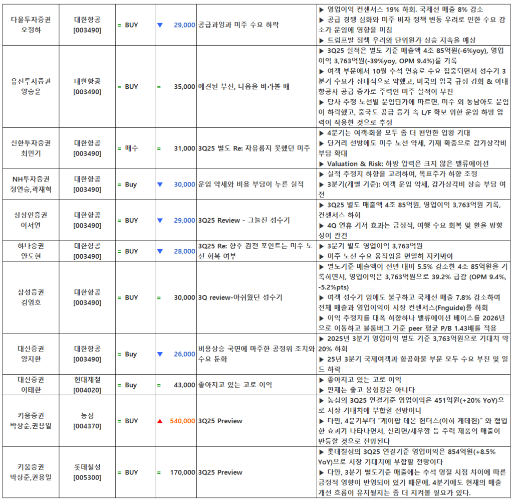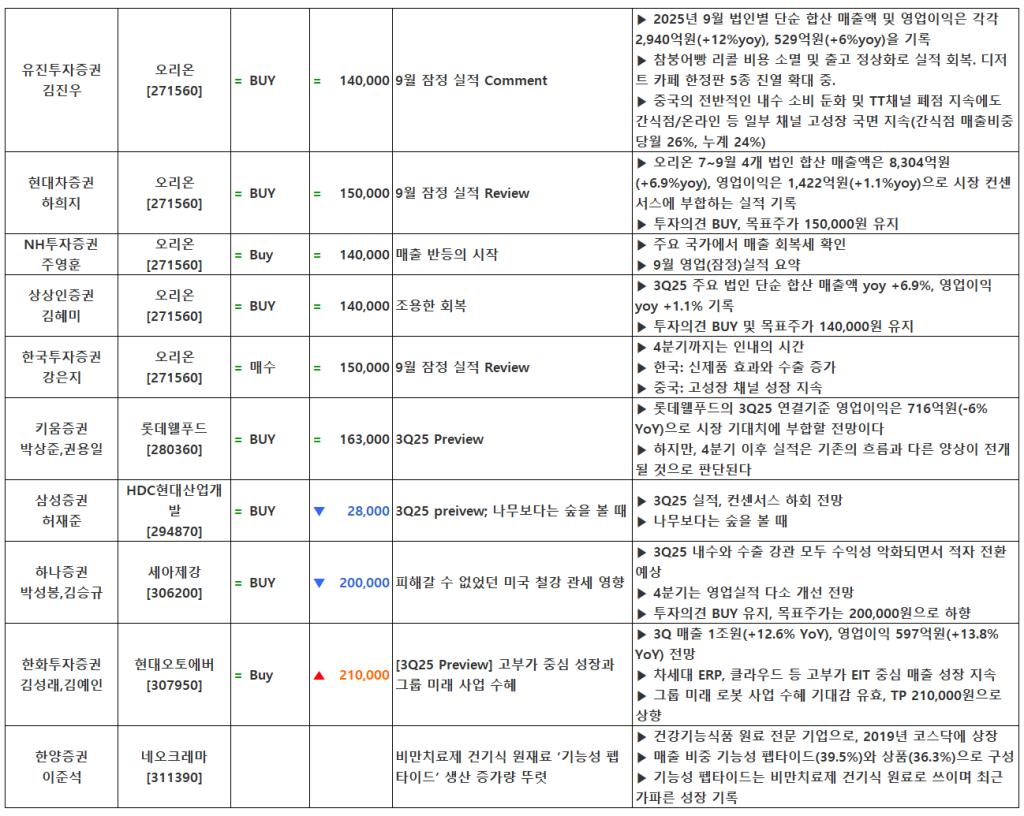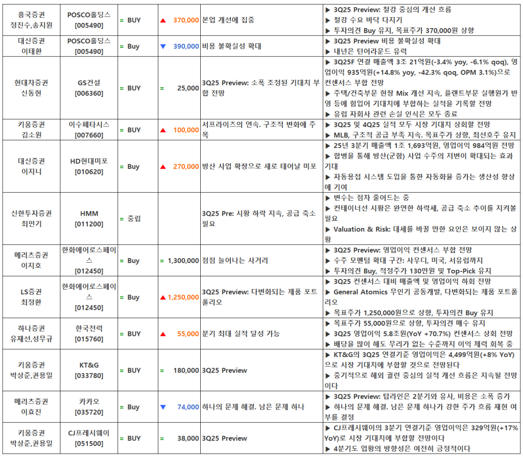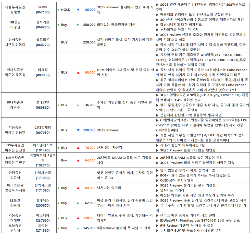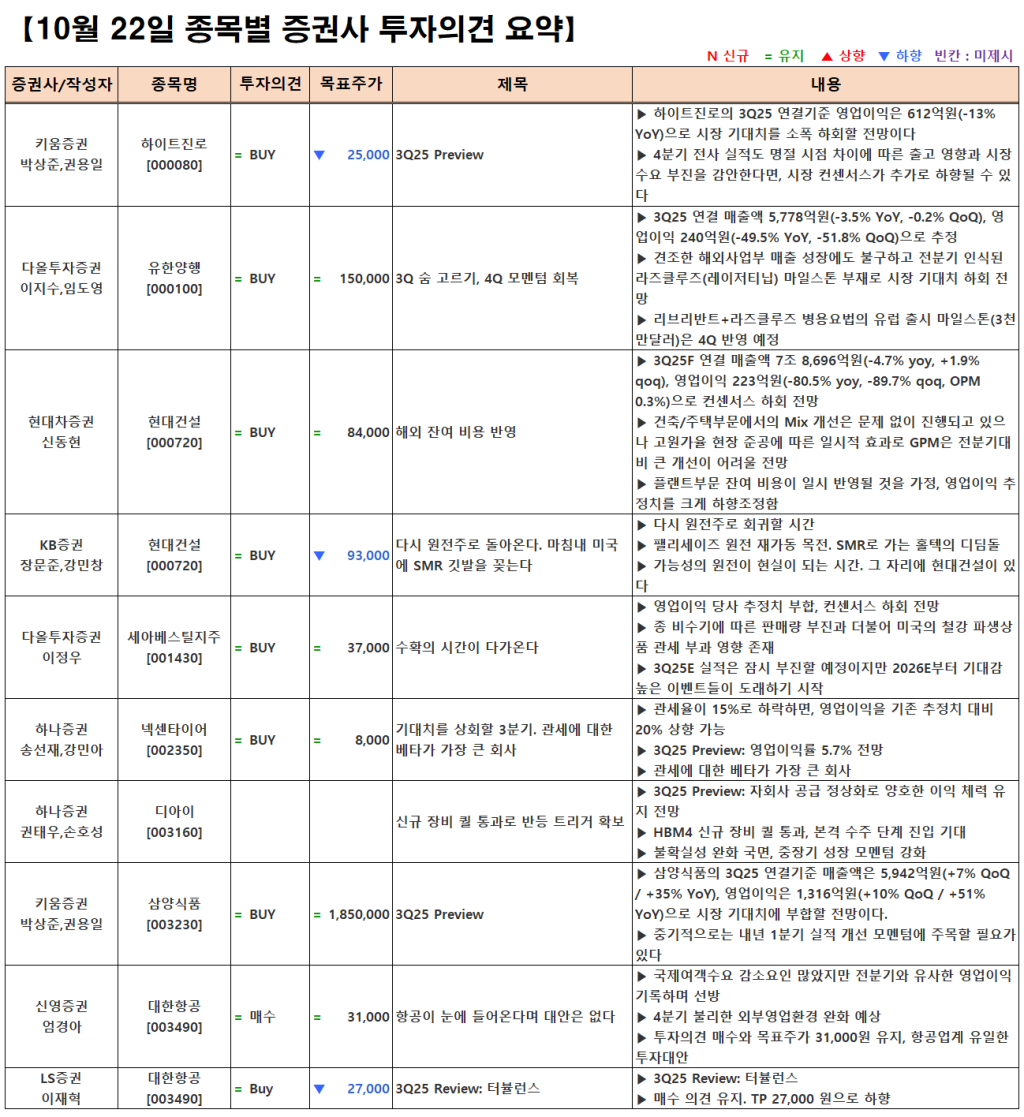 [10.22] 종목별 증권사 투자의견 요약