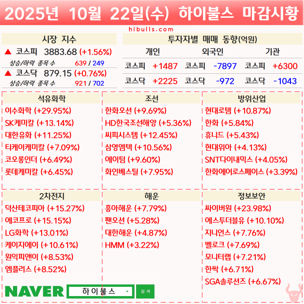 [10.22] 증시 마감시황 및 오늘의 특징주