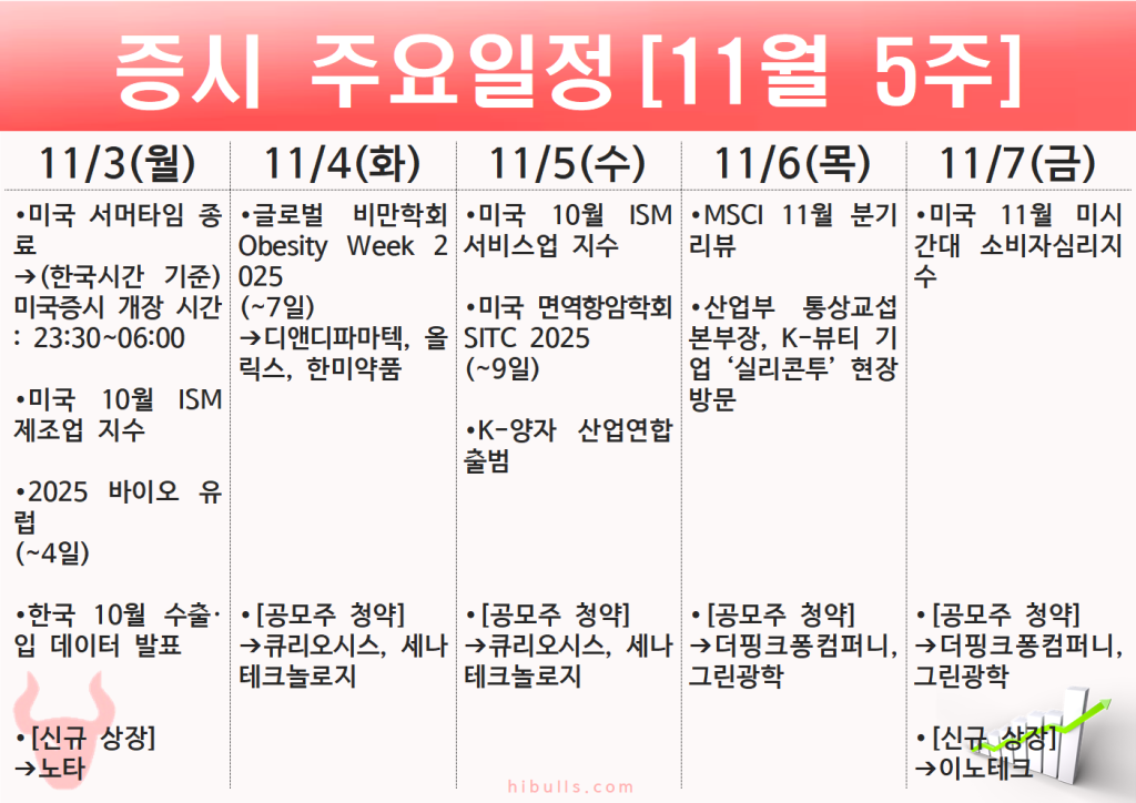 2025년 11월 1주(11.3~11.7) 주간 증시 주요 일정