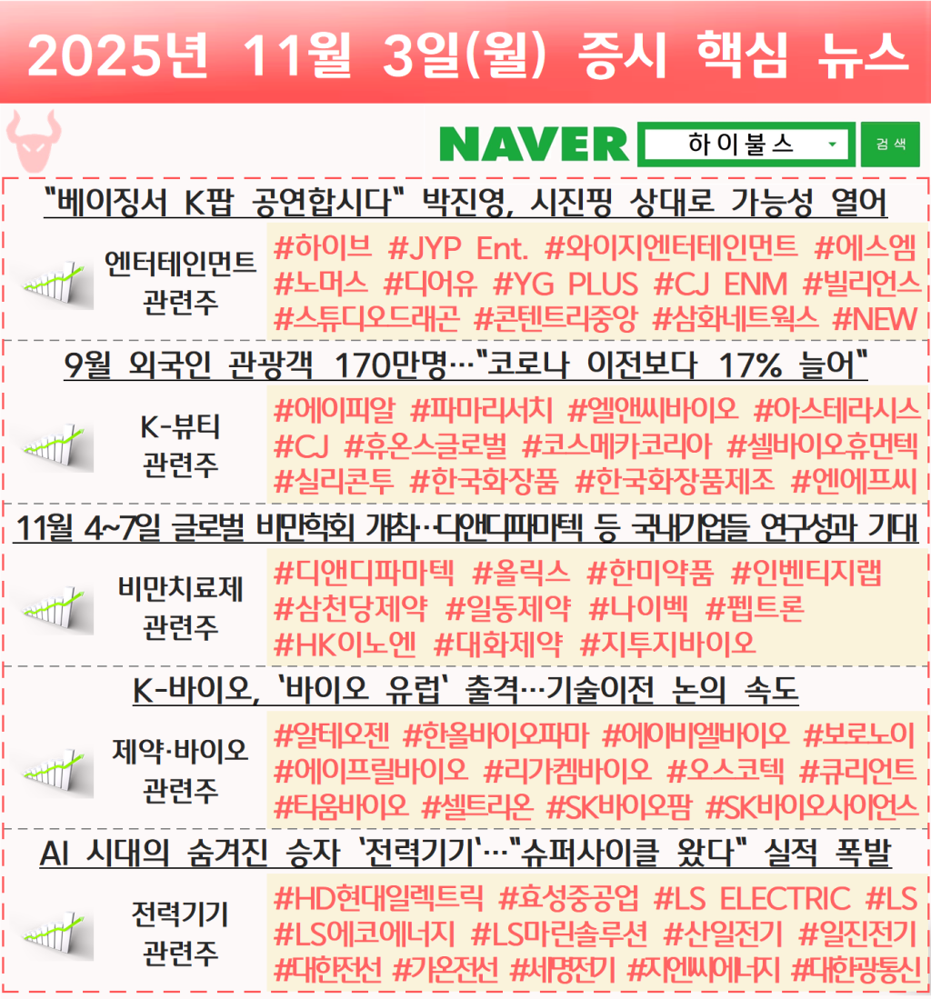 [11.03] 증시 개장 전 핵심뉴스 하이불스 Pick