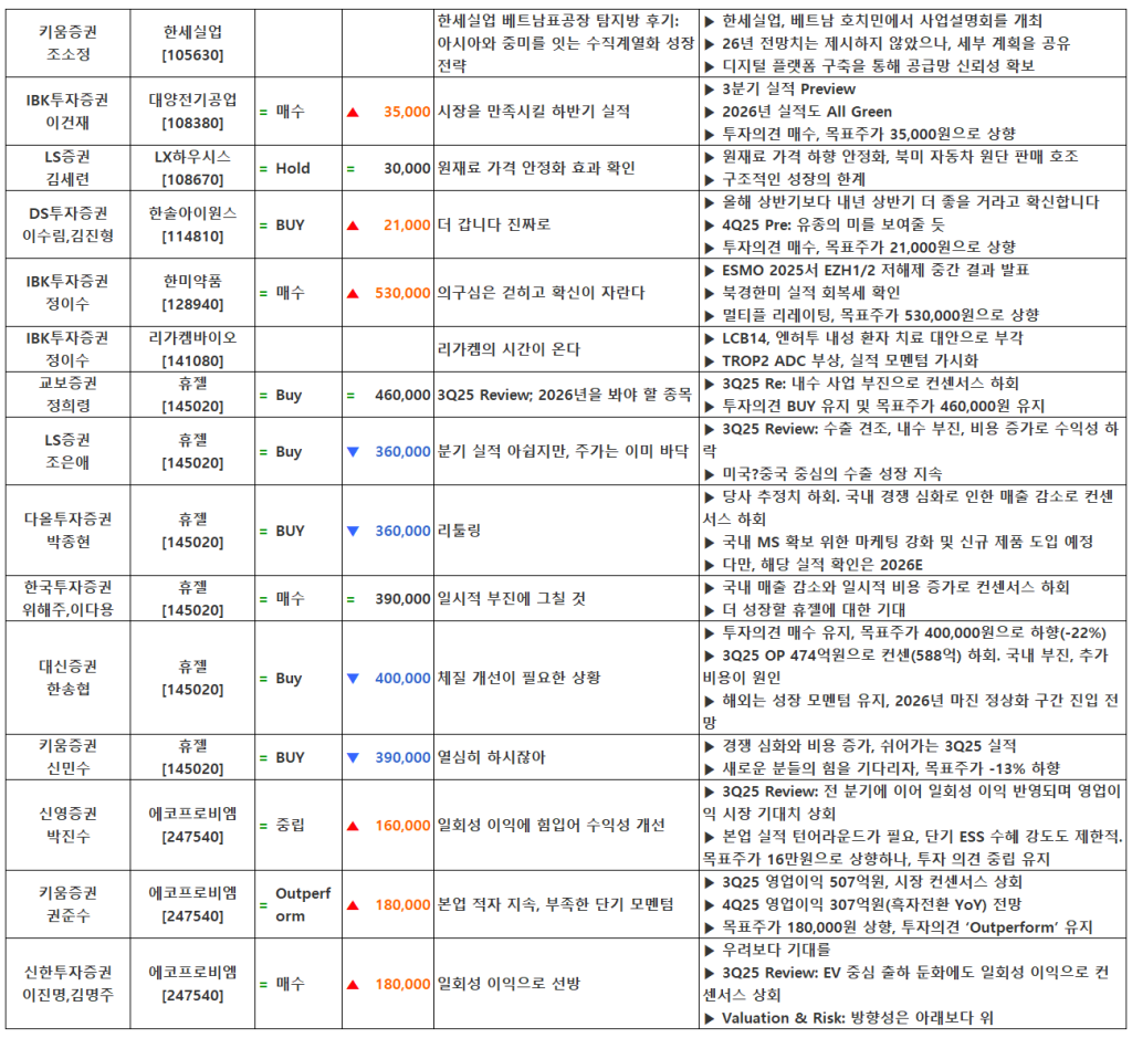 [11.03] 외국인/기관 순매수 상위 종목(AI 랠리 계속, 제약·바이오)