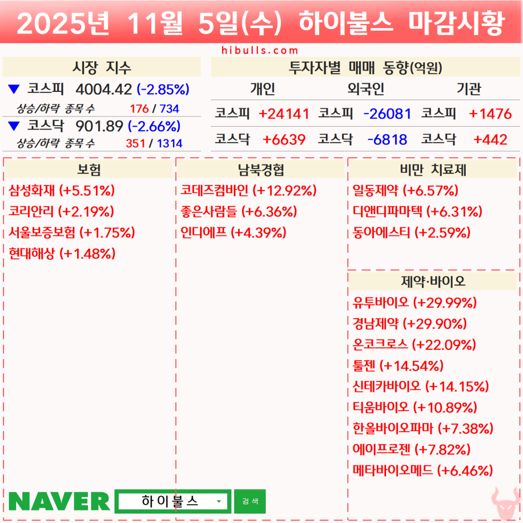 [11.05] 증시 마감시황 및 오늘의 특징주