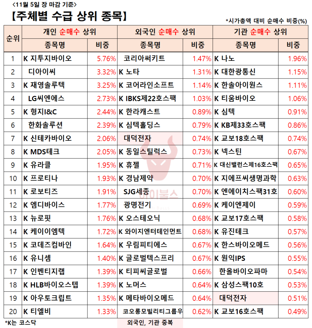[11.04] 외국인/기관 순매수 상위 종목(제약·바이오┃두 번째 필독)