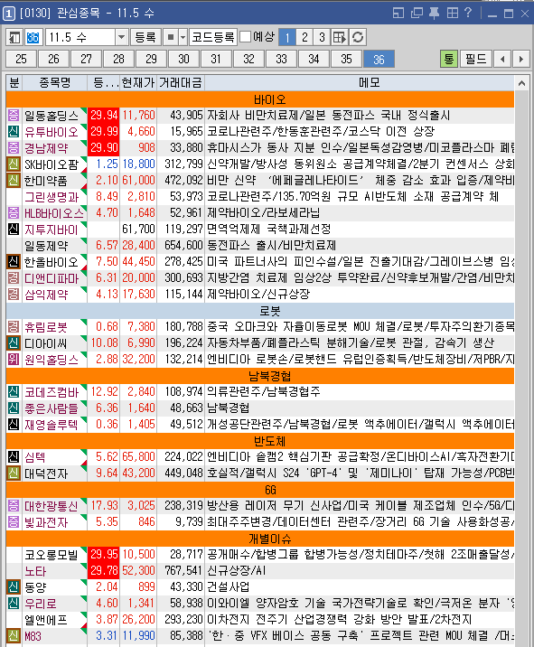 25년 11월 6일(목) 상위트레이더 관심종목+[바이오/로봇/남북경협/반도체 등] 주도주 재료 정리 + 포트폴리오 대응전략