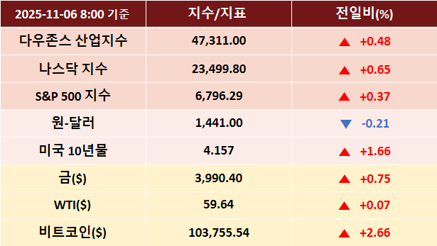 전일 미국 증시는 셧다운 사태 장기화 속 AI 기술주 저가 매수 유입, ADP 민간고용, ISM 서비스업 PMI 호조에 3대 지수 상승 마감