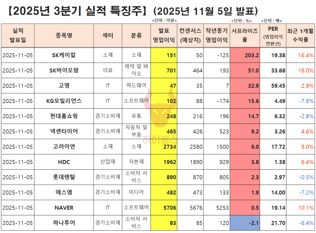 실적 부합 : 고려아연, HDC, 롯데렌탈, 에스엠, NAVER, 하나투어, KG이니시스, LG헬로비전, 카카오뱅크, ISC, LX인터내셔널, 현대백화점