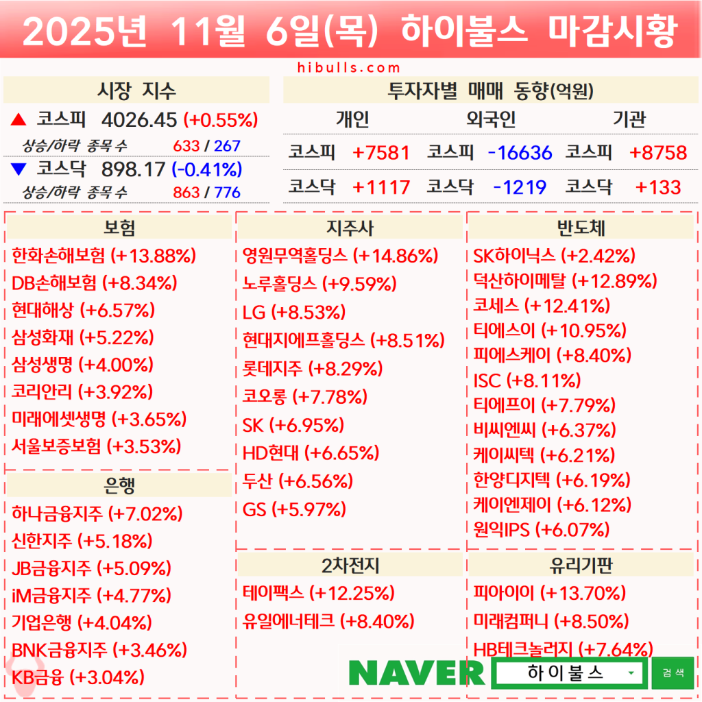 [11.06] 증시 마감시황 및 오늘의 특징주