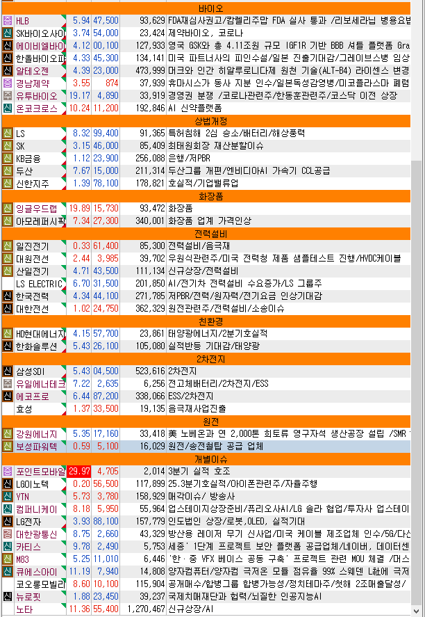 25년 11월 7일(금) 상위트레이더 관심종목+[상법개정/반도체/바이오/2차전지 등] 주도주 재료 정리 + 포트폴리오 대응전략