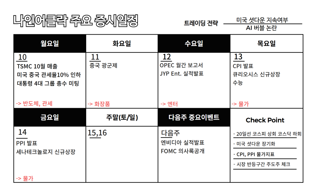 25년 11월 2주차 주간일정 + 상위트레이더 선정 섹터별 대장종목[로봇/자동차/반도체/바이오 등] + 포트폴리오 대응전략