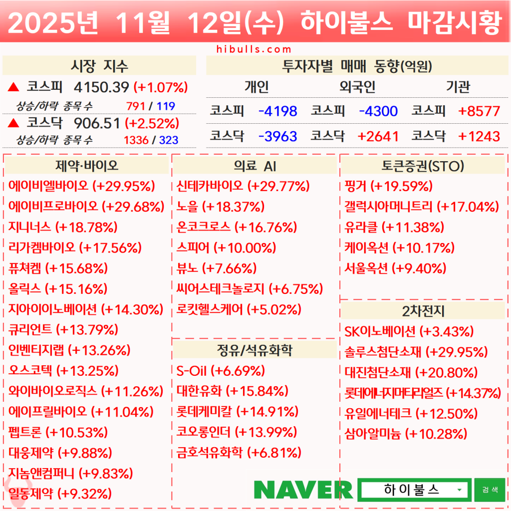 [11.11] 외국인/기관 순매수 상위 종목(AI 랠리)