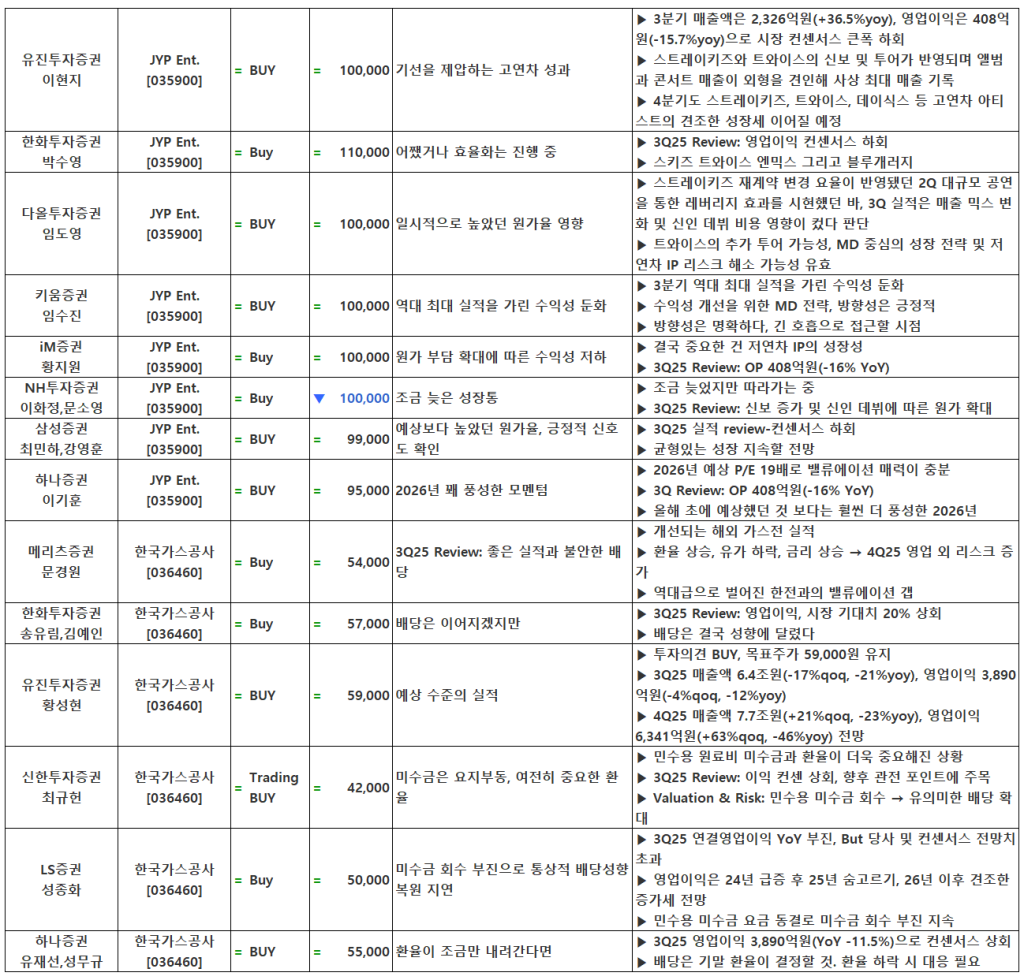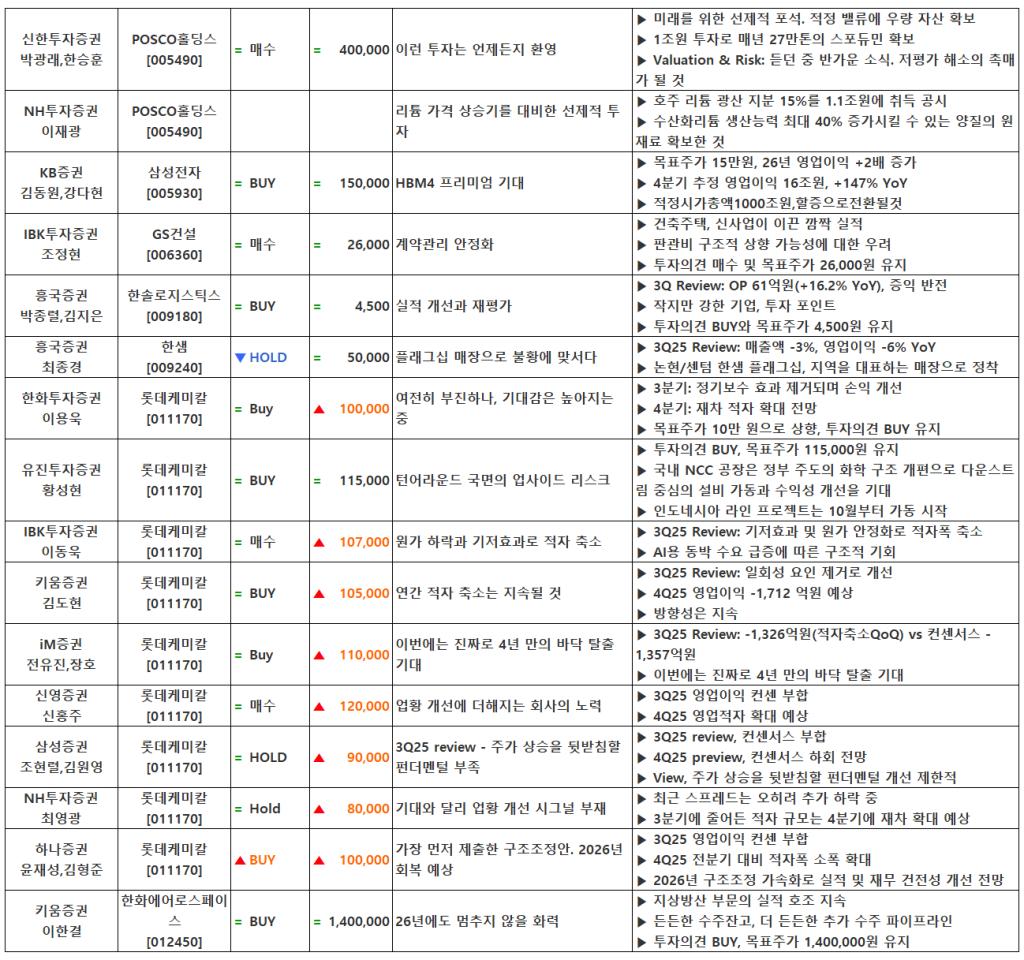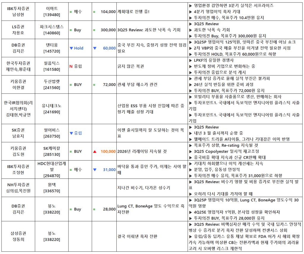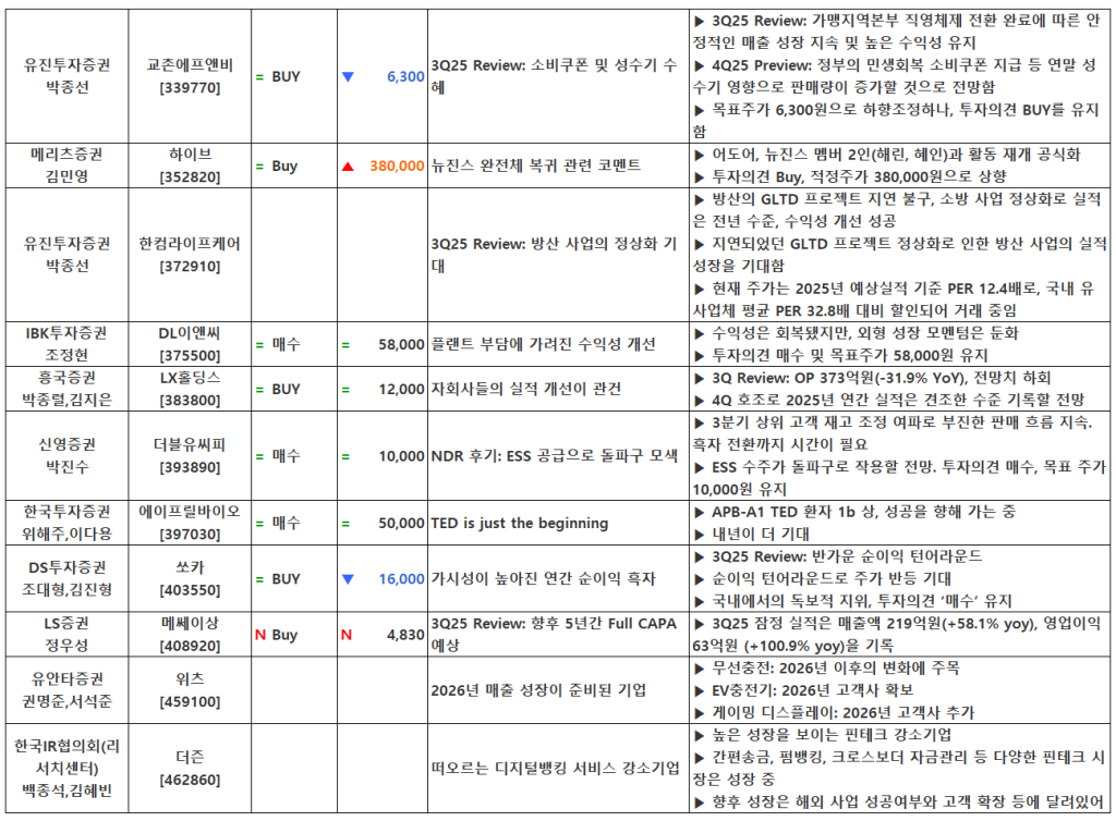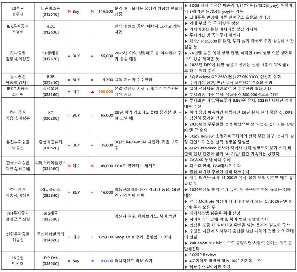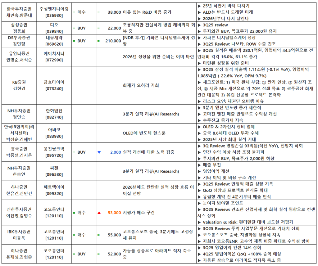 [11.11] 종목별 증권사 투자의견 요약