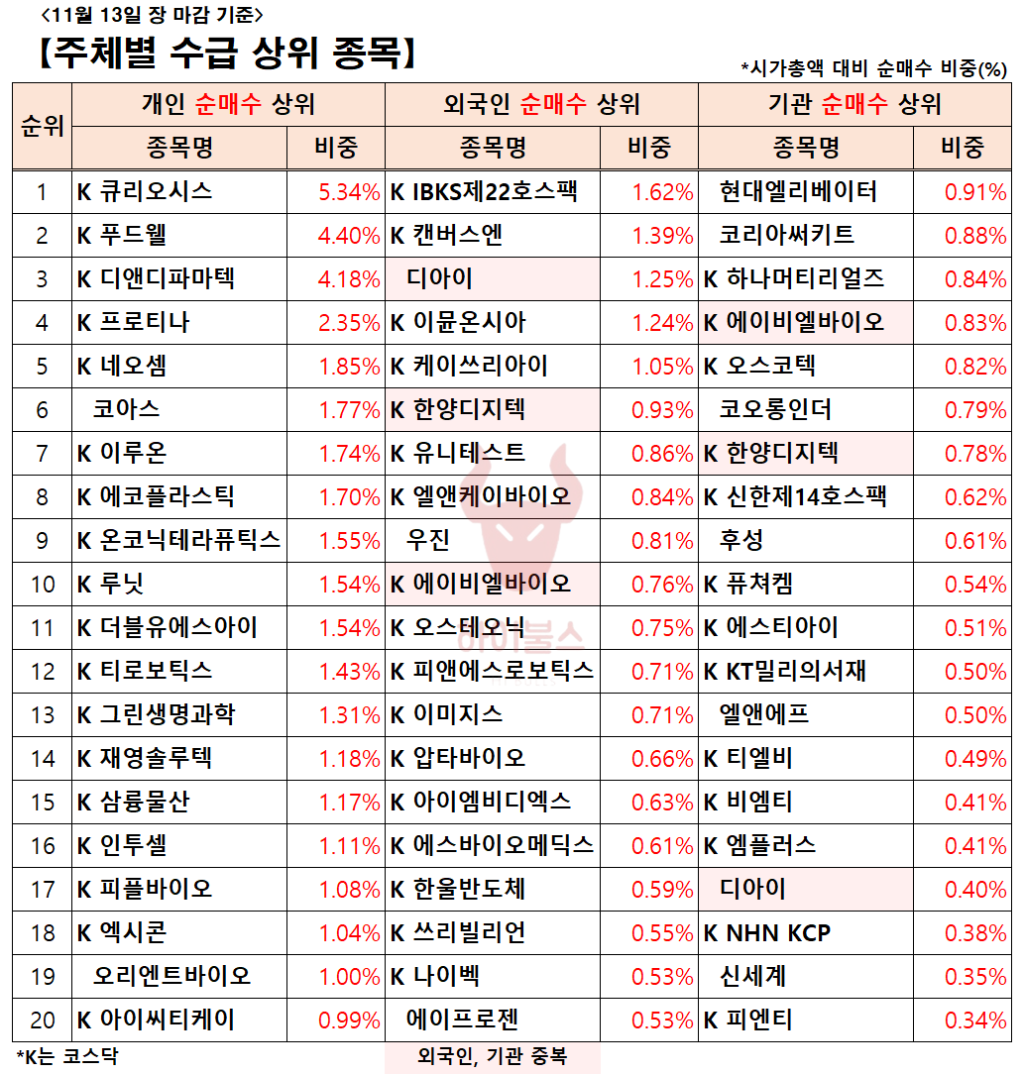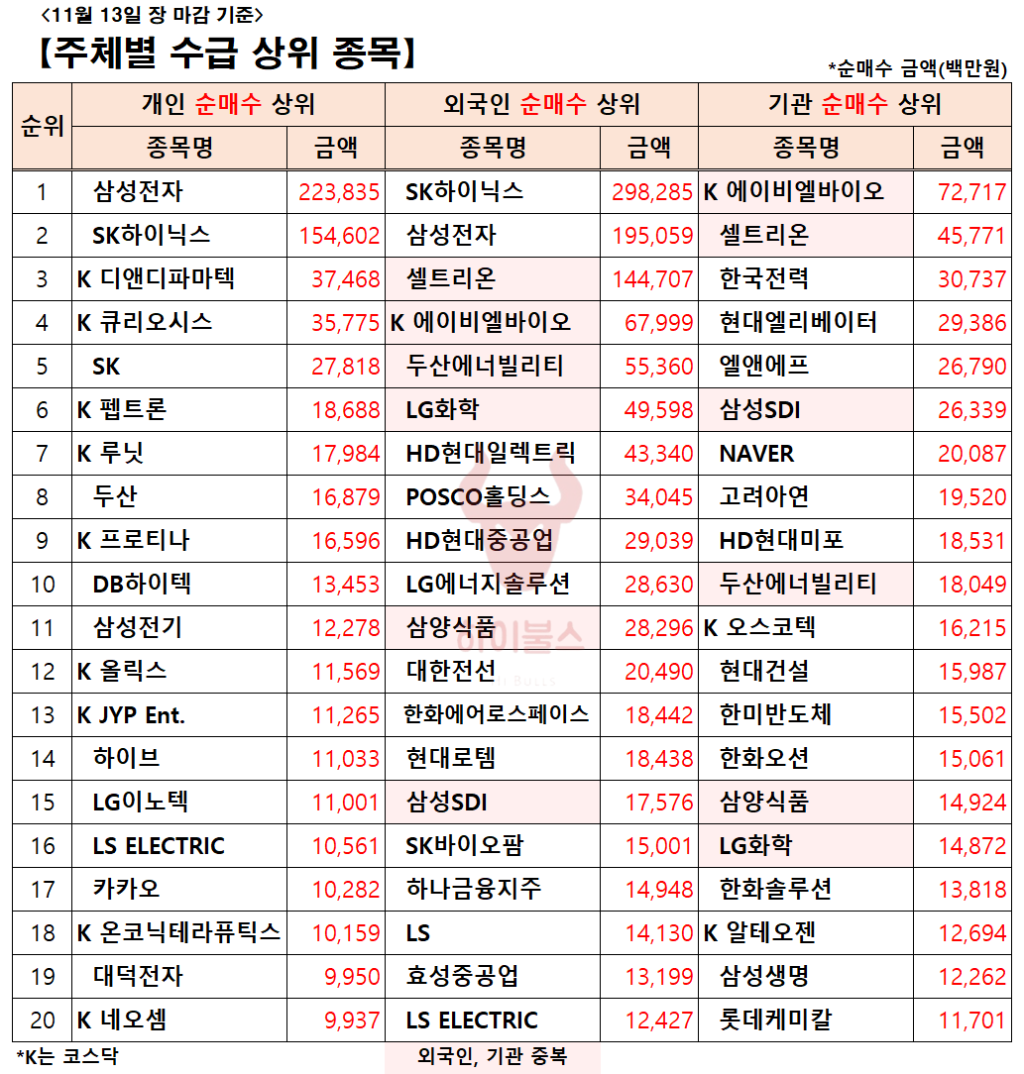 [11.12] 외국인/기관 순매수 상위 종목(제약·바이오┃세 번째 필독)