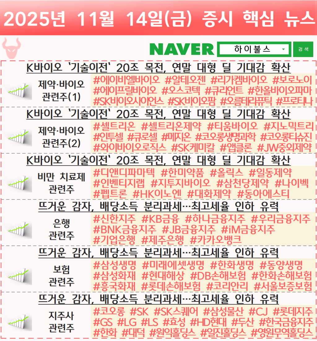 [11.14] 증시 개장 전 핵심뉴스 하이불스 Pick