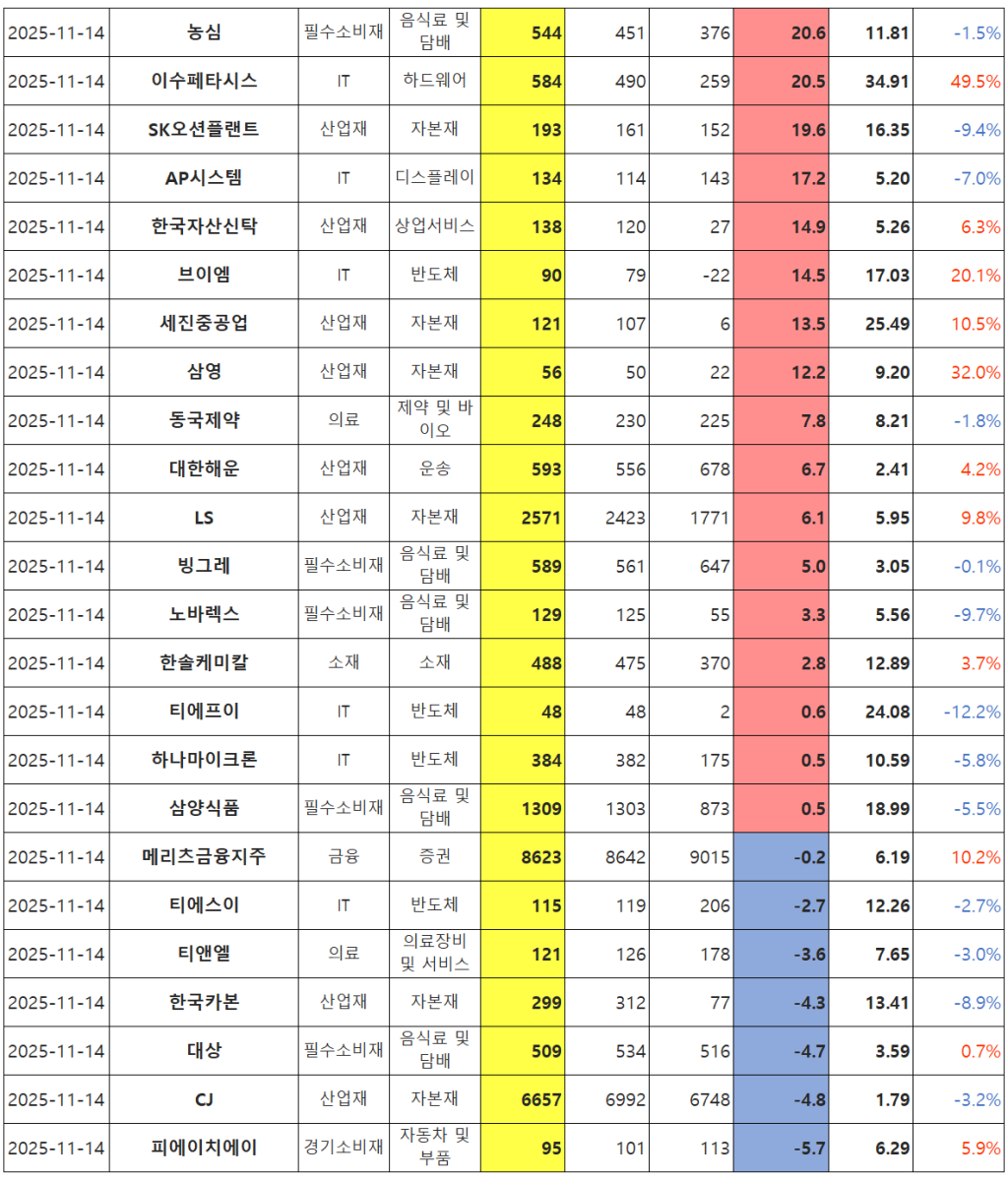 [11.14] 외국인/기관 순매수 상위 종목(실적, 조선, 제약·바이오)