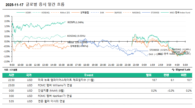 25.11.18 08:22[시그널랩] 마감 시황 및 주요 경제지표 체크 - 11/17