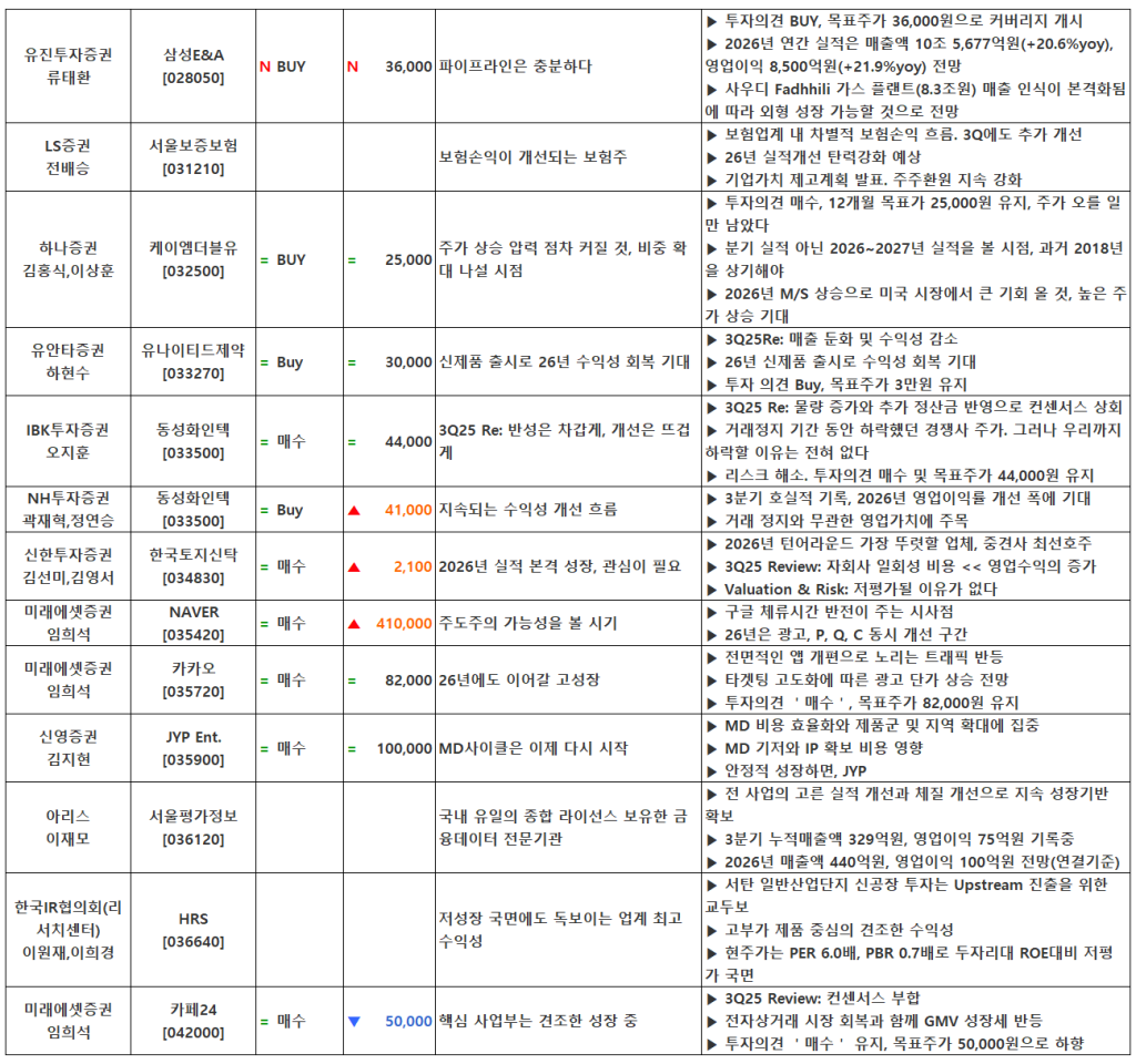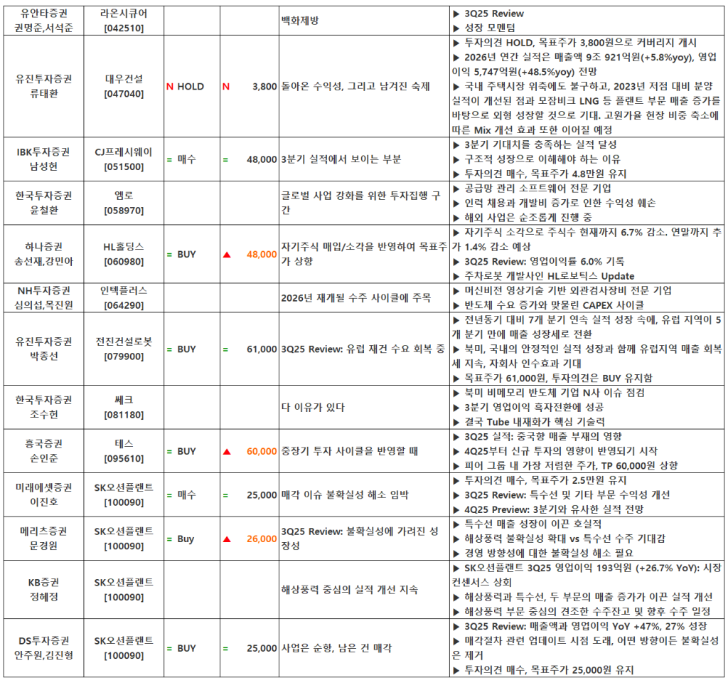 [하이불스x유안타증권] 줍줍 추천주 2025년 11월 19일(수)