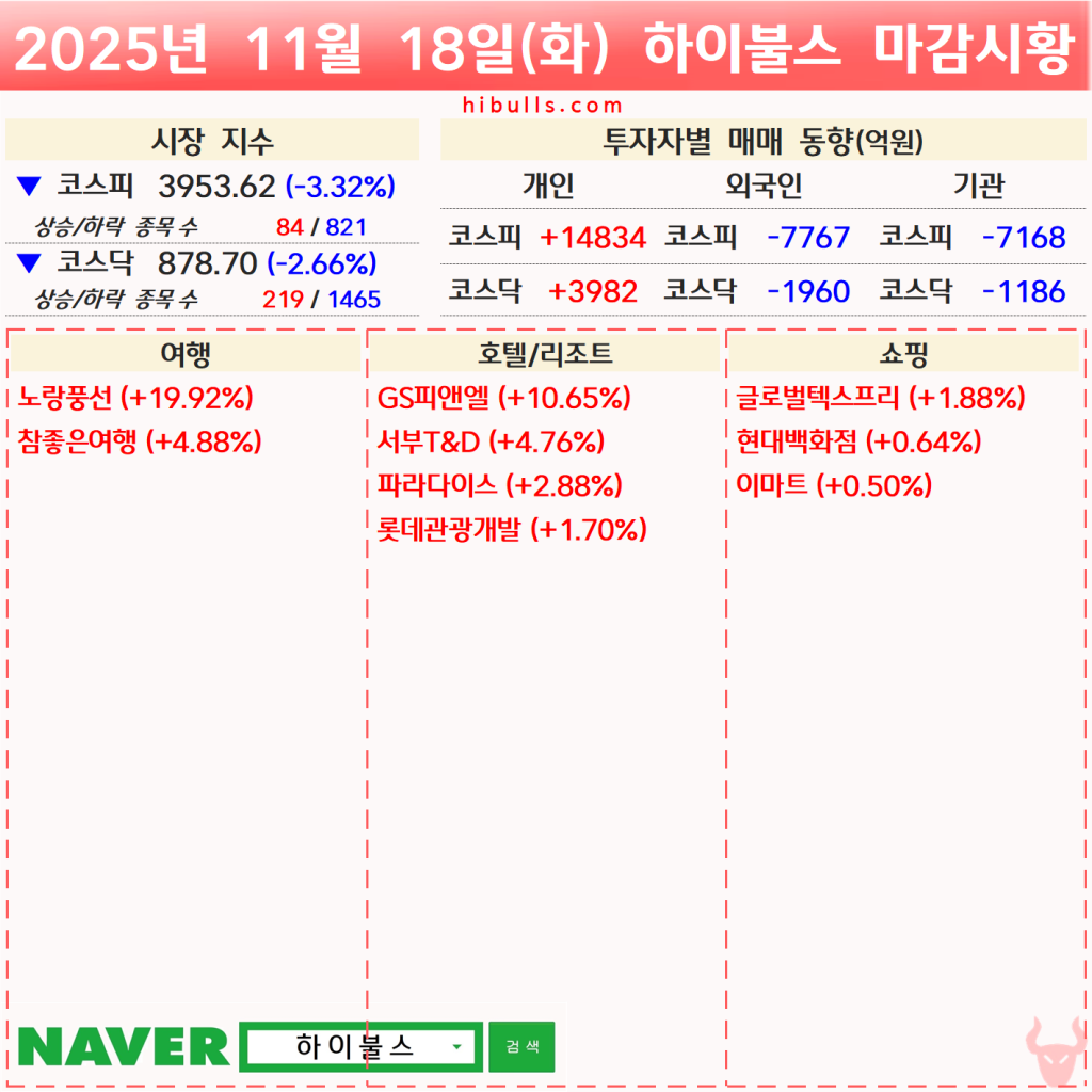 [11.18] 증시 마감시황 및 오늘의 특징주