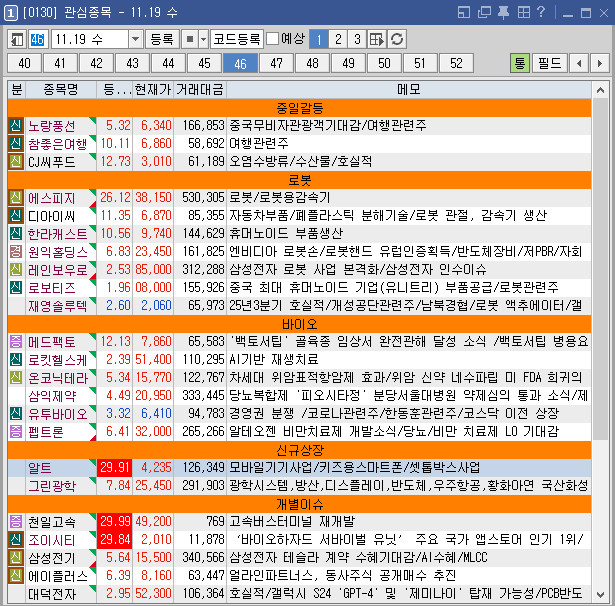 25년 11월 19일(수) 상위트레이더 관심종목+[바이오/여행/신규상장/개별이슈 등] 주도주 재료 정리 + 포트폴리오 대응전략
