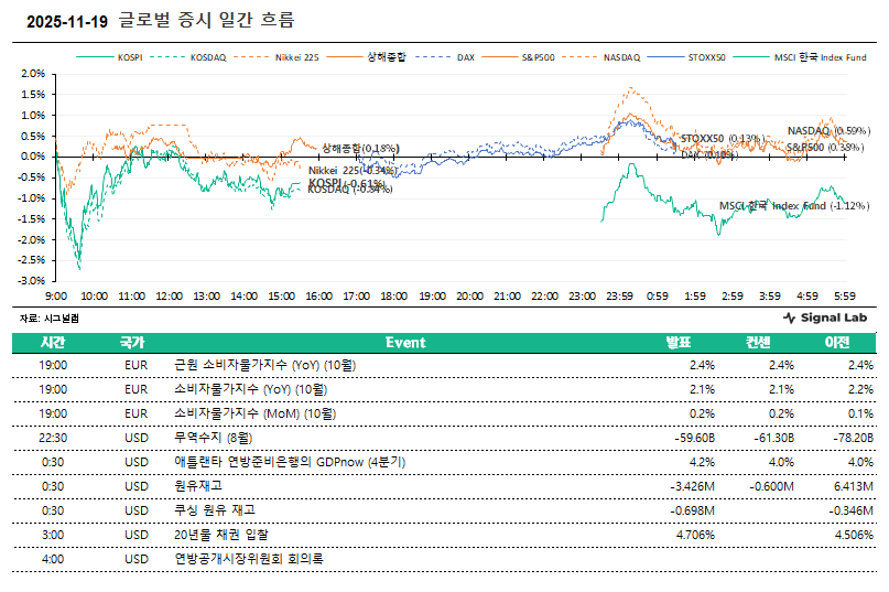 25.11.19 08:16[시그널랩] 마감 시황 및 주요 경제지표 체크 - 11/18