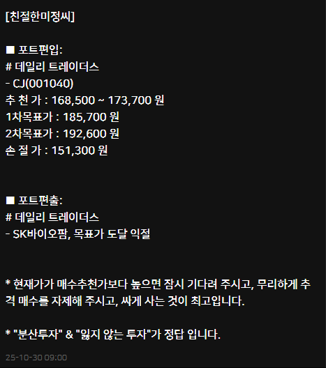 - 투자성향: 단기~중장기 / 성장+모멘텀+안정성 검토 종목발굴 / 일평균 추천주 1종목 발송