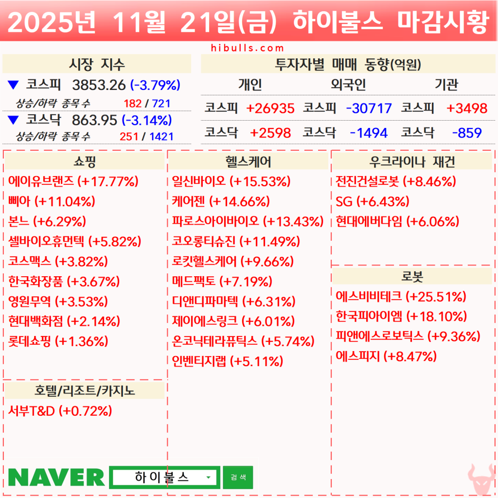 [11.21] 증시 마감시황 및 오늘의 특징주
