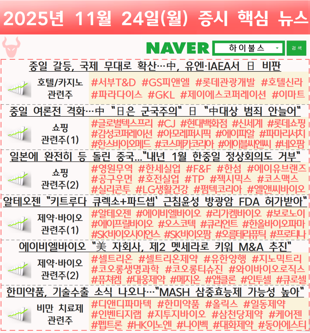 [11.24] 증시 개장 전 핵심뉴스 하이불스 Pick