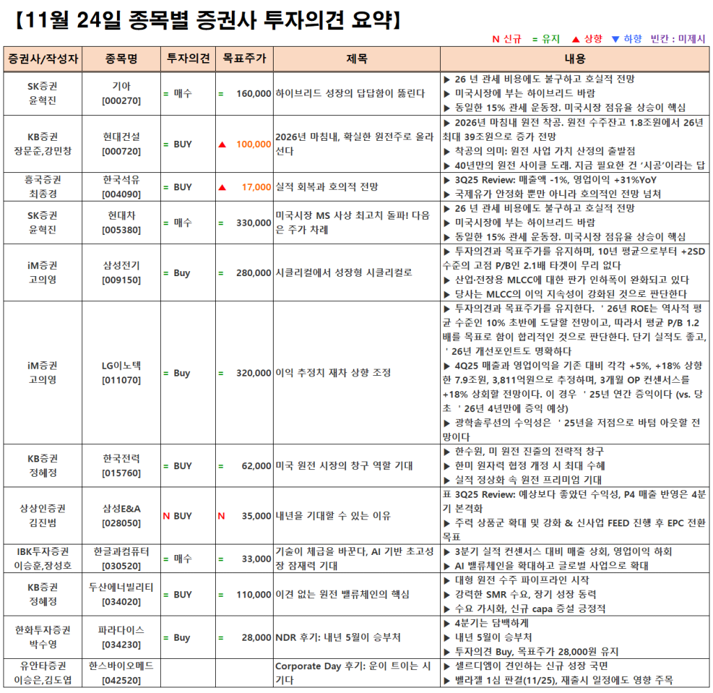 [11.24] 증시 개장 전 핵심뉴스 하이불스 Pick
