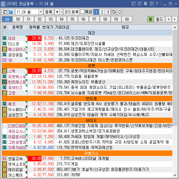 25년 11월 6일(목) 상위트레이더 관심종목+[바이오/로봇/남북경협/반도체 등] 주도주 재료 정리 + 포트폴리오 대응전략