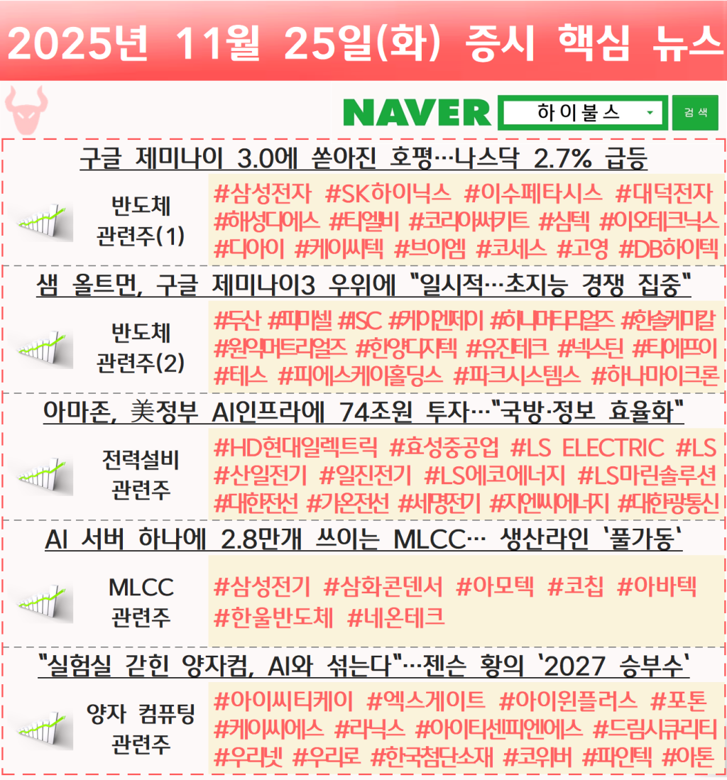[11.25] 증시 개장 전 핵심뉴스 하이불스 Pick