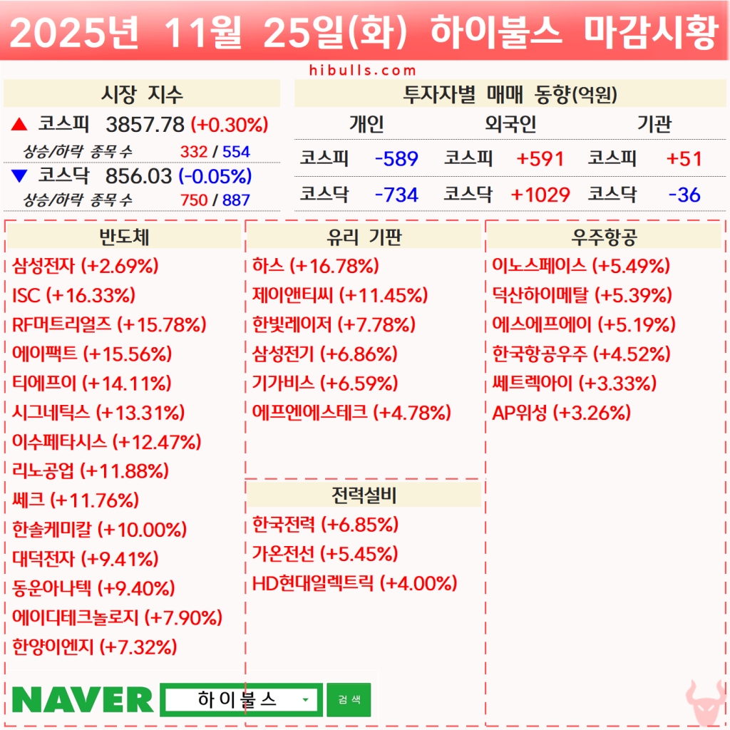 [11.25] 증시 마감시황 및 오늘의 특징주