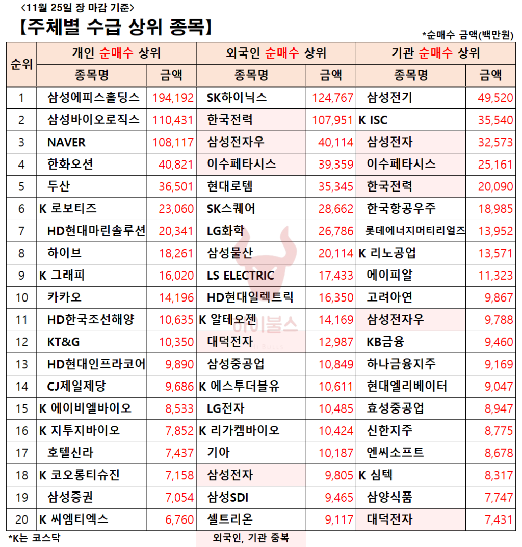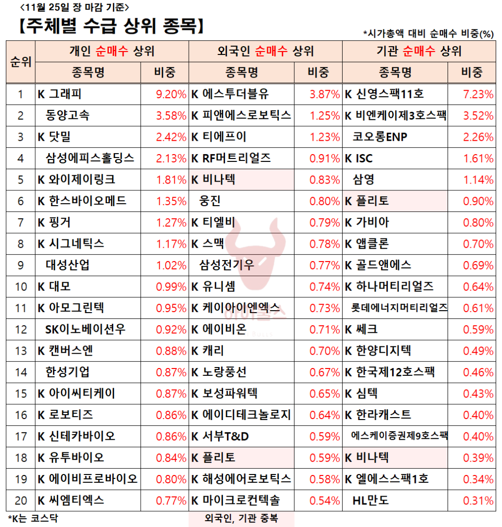 [11.25] 증시 마감시황 및 오늘의 특징주