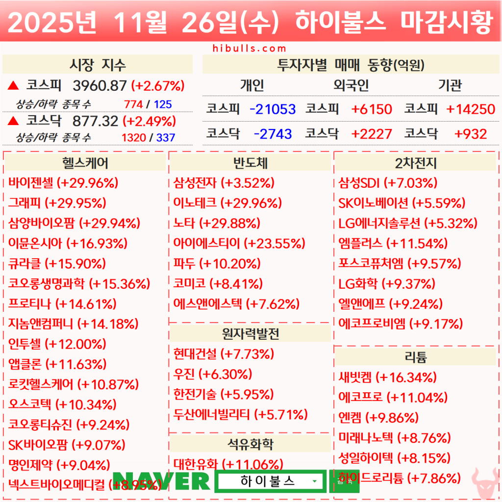[11.26] 증시 마감시황 및 오늘의 특징주