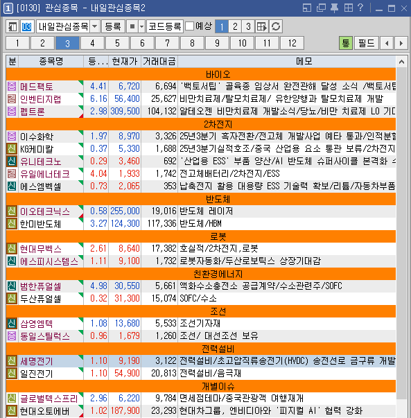 25년 11월 4일(화) 상위트레이더 관심종목+[로봇/전력설비/친환경/반도체 등] 주도주 재료 정리 + 포트폴리오 대응전략