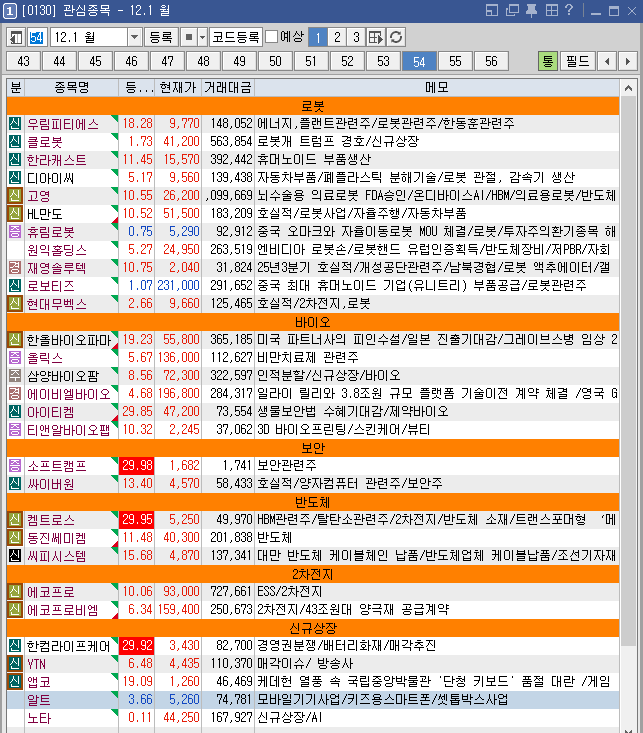 25년 12월 2일(화) 상위트레이더 관심종목+[로봇/바이오/보안/반도체 등] 주도주 재료 정리 + 포트폴리오 대응전략