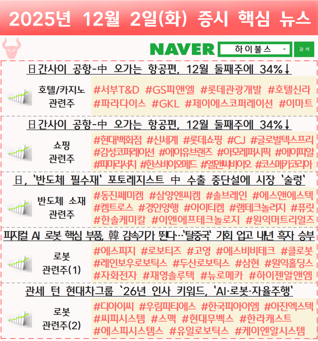 [12.02] 증시 개장 전 핵심뉴스 하이불스 Pick