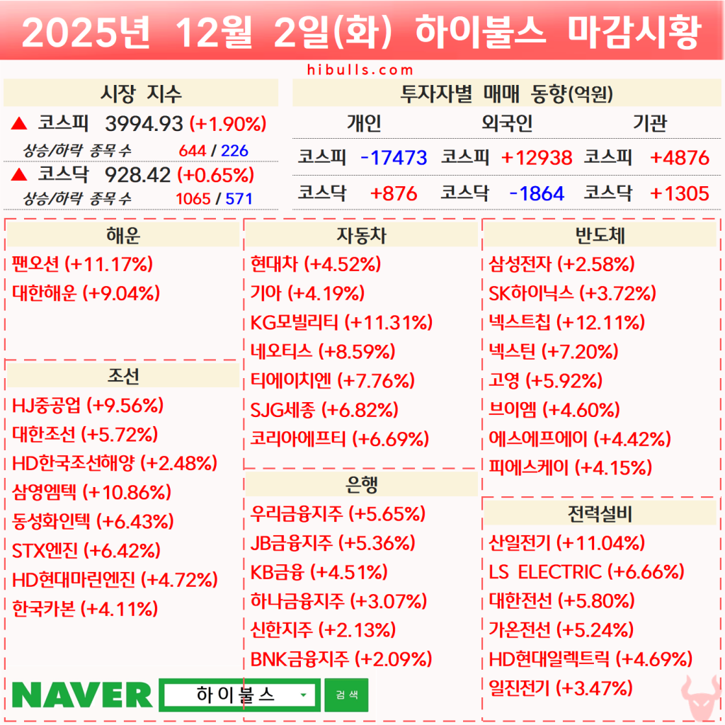 [12.02] 증시 마감시황 및 오늘의 특징주