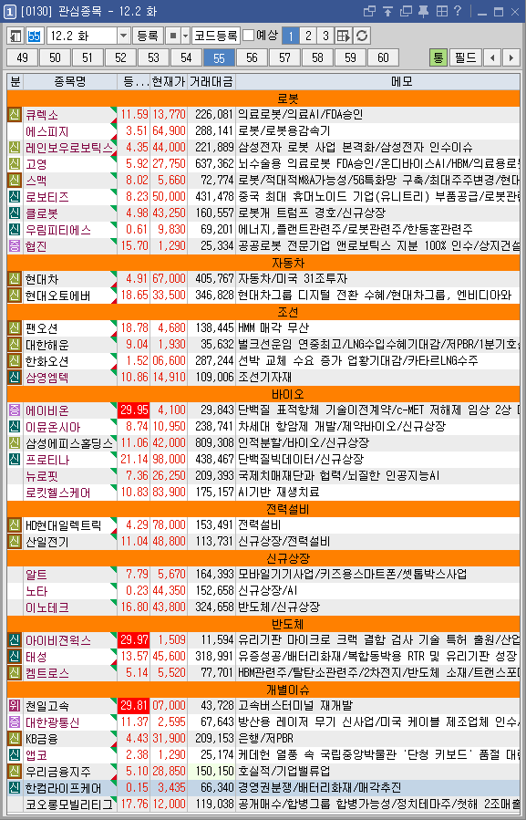 25년 12월 2일(화) 상위트레이더 관심종목+[로봇/바이오/보안/반도체 등] 주도주 재료 정리 + 포트폴리오 대응전략