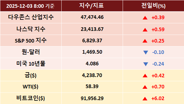 전일 미국 증시는 일본 금리 안정 등에 따른 엔케리 청산 우려 완화, 차기 연준 의장의 완화적 정책 기대감, 엔비디아 CFO의 AI 버블 일축 발언 등에 힘입어 상승 마감