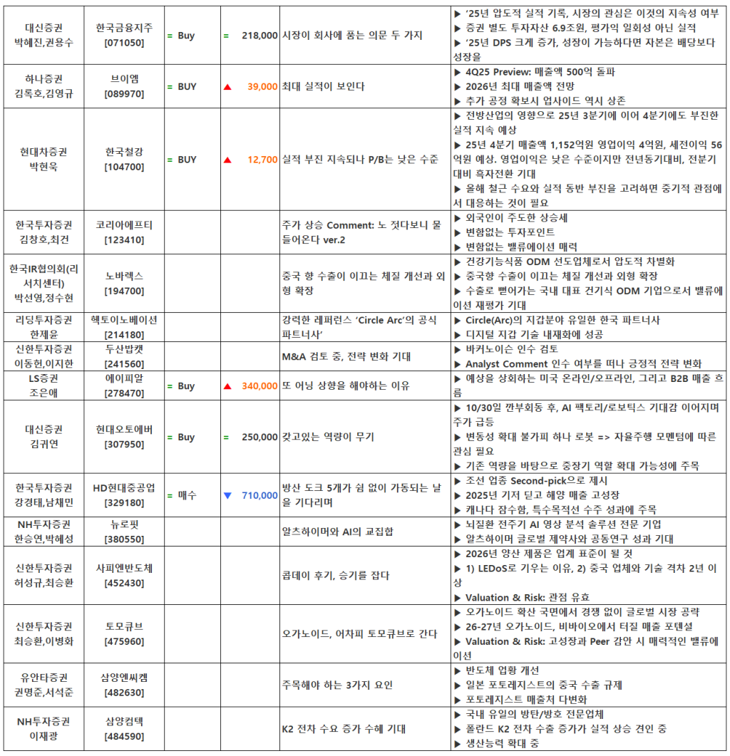 [12.03] 종목별 증권사 투자의견 요약