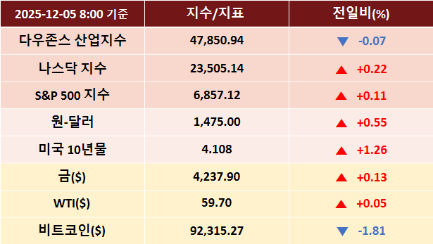 메타는 내년 메타버스 관련 예산을 30% 삭감하는 방안을 검토하고 있다는 소식에 수익성 개선 기대감, 엔비디아는 젠슨환-트럼프 회동 속 의회에서 국방수권법 내 반도체 대중 수출을 제한하는 조항을 제외할 가능성이 높아질 것이라는 소식이 상승 요인으로 작용